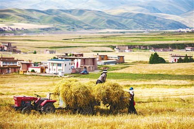 秋天的平原、河谷、山野里,大片大片的青稞翻滾著麥浪,金黃耀眼,如同一塊塊黃色、喜悅、飄飛著麥香的金色云朵,綿延到天與地的盡頭。農(nóng)民在麥田間忙著彎腰、揮鐮、系起青稞束,紅臉蛋綻滿喜悅,向大地和來往的人訴說著大自然的饋贈(zèng)。高原上人們臉上的“高原紅”是地理、氣候環(huán)境等造成的面部紅血絲,但沒有人會(huì)否認(rèn),這也是一種勤勞的美。在阿壩縣,這種勤勞與汗水澆灌出累累碩果:青稞、蔬菜、中藥材、牧草等基地規(guī)模達(dá)12.3萬畝,年接待游客近100萬人次,農(nóng)村居民人均可支配收入增長9.7%……