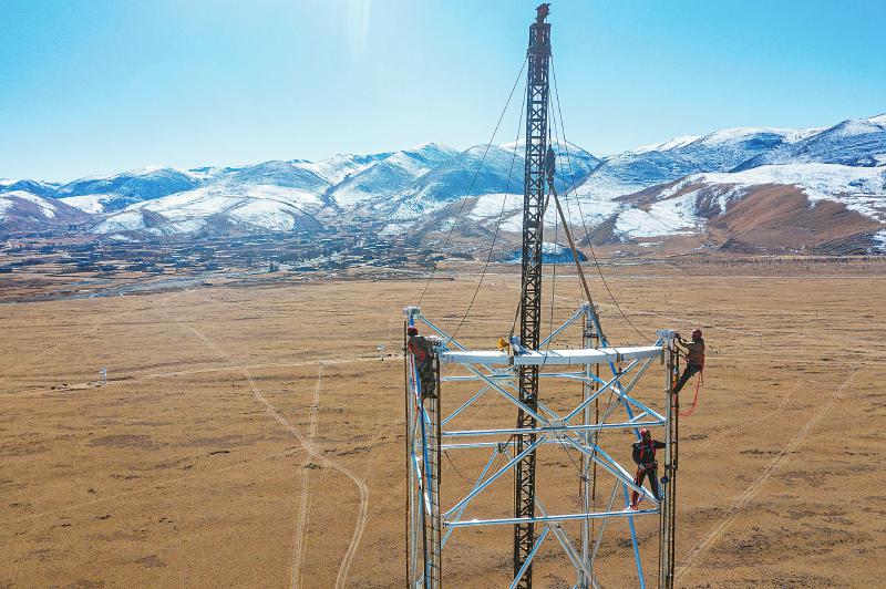 2022年10月23日 技術(shù)人員在百米高的子午工程二期定標塔上調(diào)試天線。