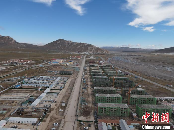 圖為無人機(jī)航拍災(zāi)后重建農(nóng)牧民D級住房項(xiàng)目?,敹嗫h委宣傳部 供圖
