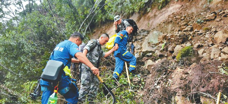 其實(shí)張自立背后還有一群“汶川哥哥”,四川森林消防總隊(duì)阿壩支隊(duì)汶川大隊(duì)參與瀘定地震救援的一共74人,他們中很多都來(lái)自汶川,平均年齡在二十七八歲,小時(shí)候都經(jīng)歷過(guò)汶川地震。“因?yàn)槲医?jīng)歷過(guò)地震,我知道當(dāng)?shù)氐娜嗽诘戎覀儭⑴沃覀儯乙M快趕到他們面前?!睋岆U(xiǎn)救災(zāi),時(shí)間就是生命。沒(méi)有橋,就用皮劃艇將救援人員送到山腳;沒(méi)有路,就徒手爬山進(jìn)村展開搜救,隊(duì)員們分秒必爭(zhēng),以最快的速度趕到受災(zāi)群眾身邊,不僅及時(shí)提供了專業(yè)救援,更為受災(zāi)群眾注入了戰(zhàn)勝困難的信心。