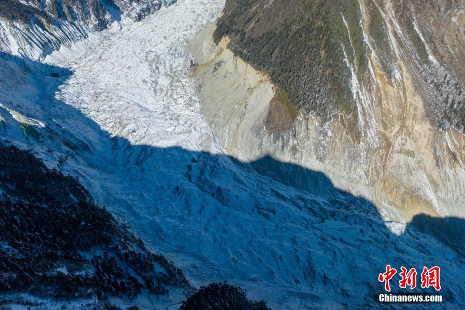 圖為航拍震后的海螺溝冰川冰舌段。 劉忠俊 攝