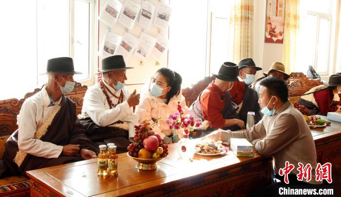 圖為同仁市社會福利服務(wù)中心的老年人講述自己的生活。馬芝芬 供圖