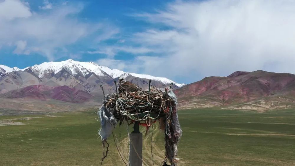 位于青海省海西蒙古族藏族自治州天峻縣蘇里鄉(xiāng)的一處招鷹架。新華社記者 李占軼 攝