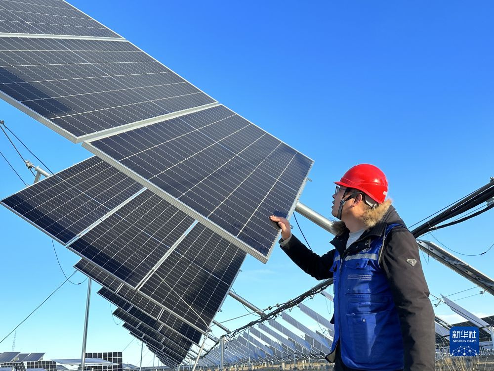 1月10月,塔拉灘光伏發(fā)電園區(qū)工作人員在電站巡檢。新華社記者 張子琪 攝