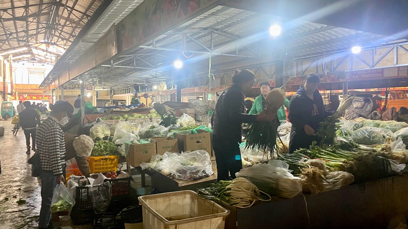 大年初五早上,記者來到香格里拉市向陽農貿市場看到市場內攤位已經在陸續(xù)開張營業(yè)。早上八點,已經有市民前來采購新鮮蔬菜,直到下午三點多市場內依舊有很多市民進出采購。