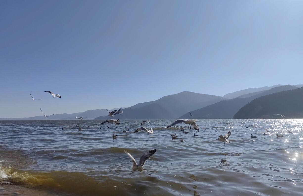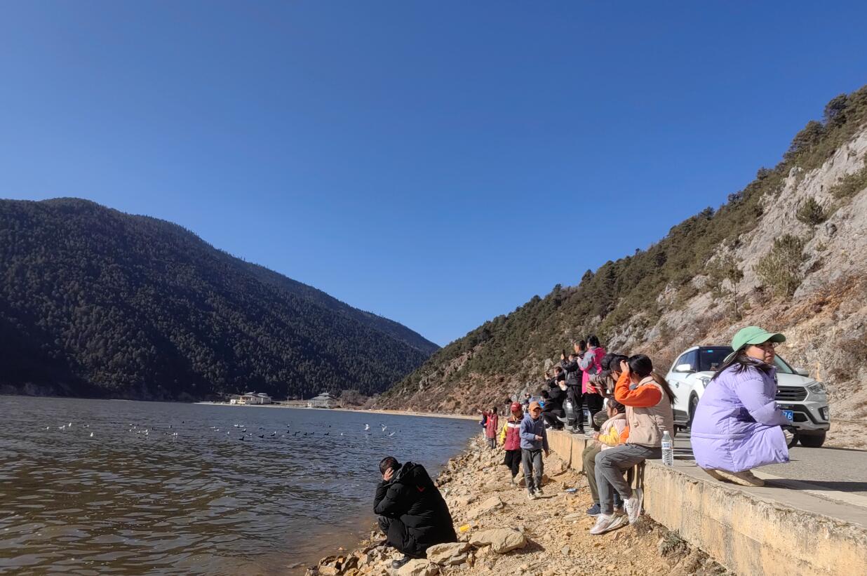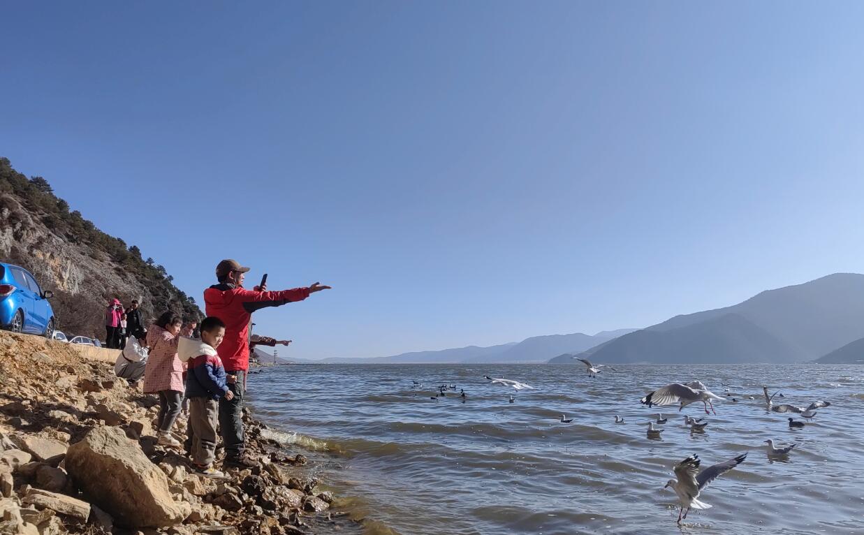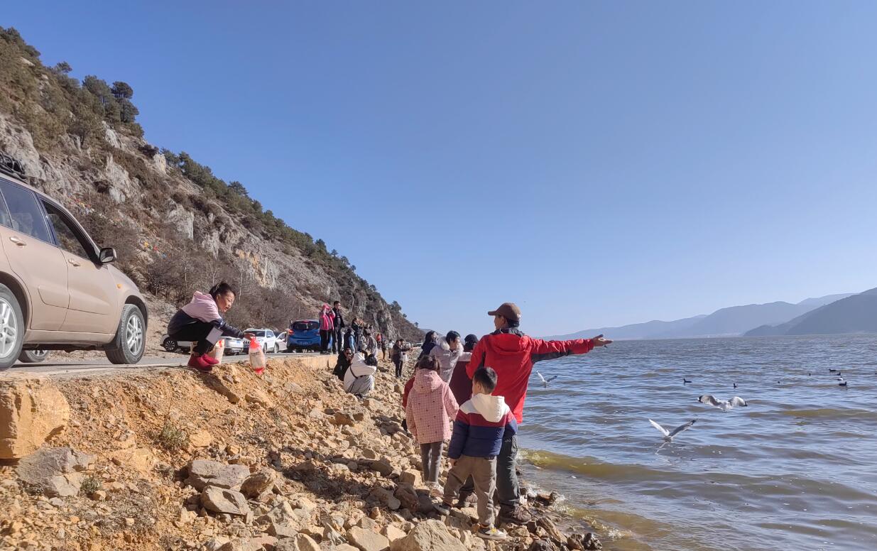 1月28日,記者在納帕海自然保護(hù)區(qū)看到成群的海鷗在這里盤旋飛舞,不少游客手托面包進(jìn)行投喂,一幅幅人與自然和諧共生的美好畫卷徐徐鋪開?!暗谝淮蝸硐愀窭锢吹讲簧儆慰驮谶@里投喂海鷗,我也買一袋來試試。”游客王鑒詳說。
