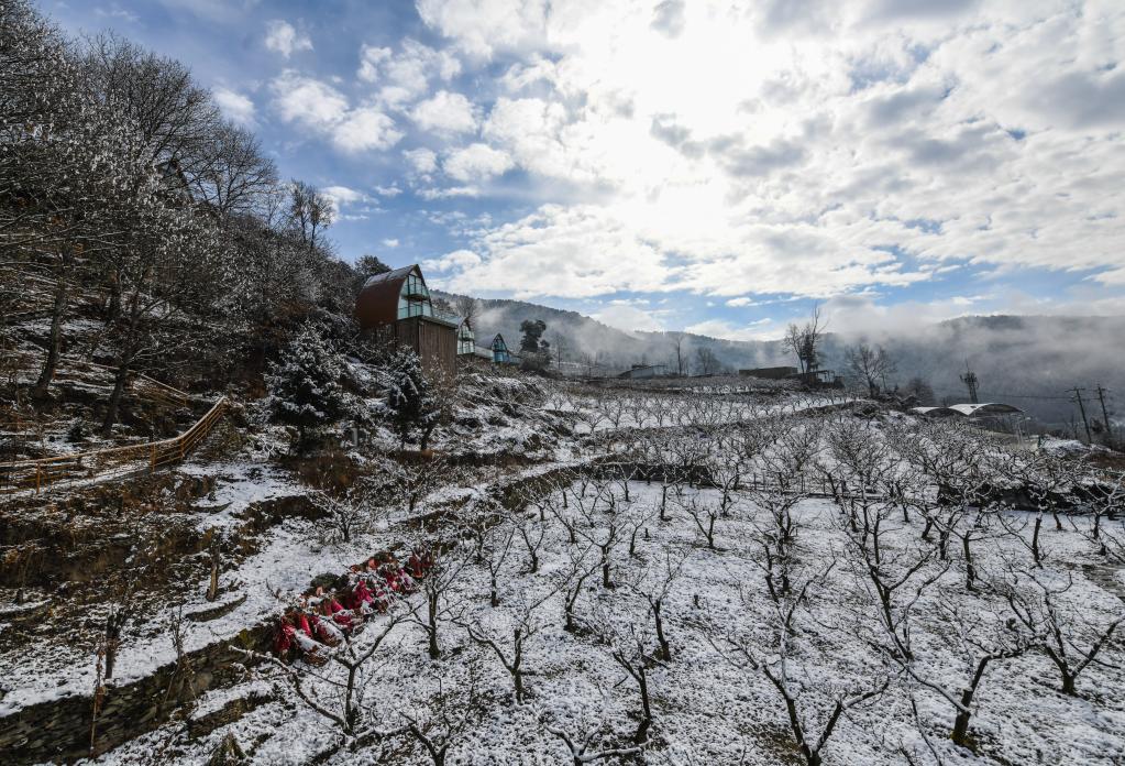 2月9日,一場(chǎng)大雪后,克枯村的李子樹枝干上掛滿雪花。新華社記者 王曦 攝