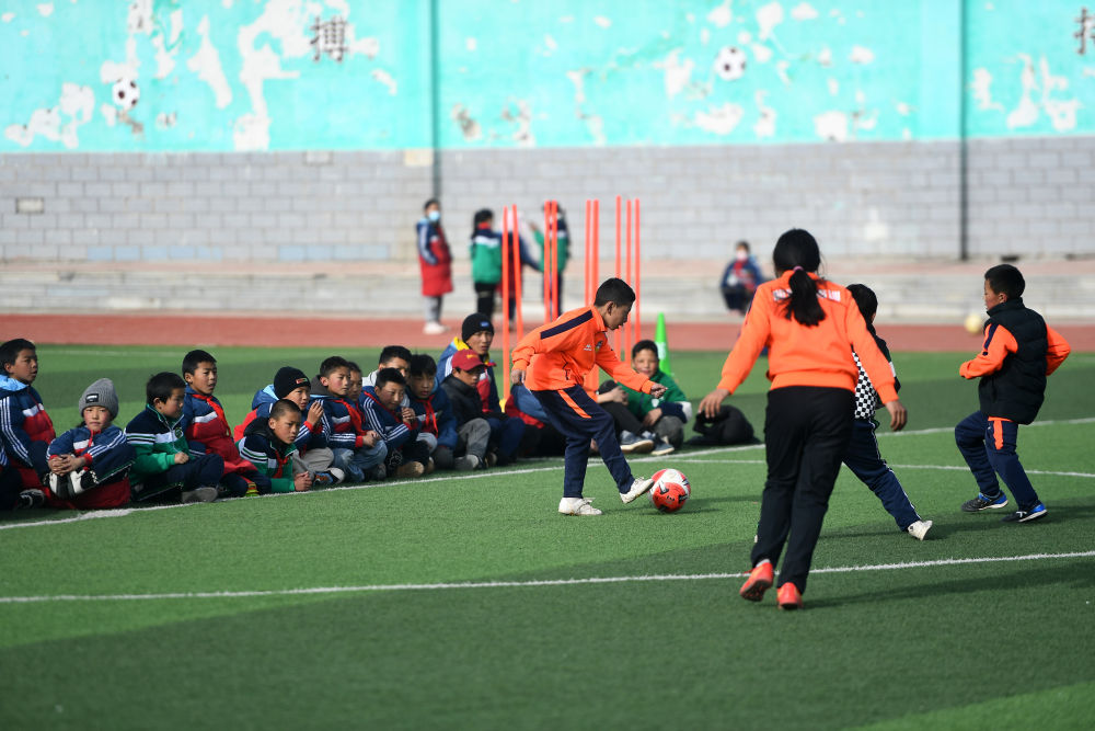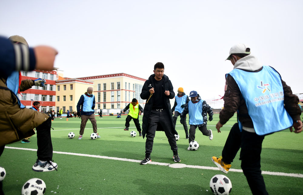 3月1日,在玉樹州曲麻萊縣第一完全小學(xué),曲麻萊青訓(xùn)隊球員在訓(xùn)練課上。新華社記者 張宏祥 攝