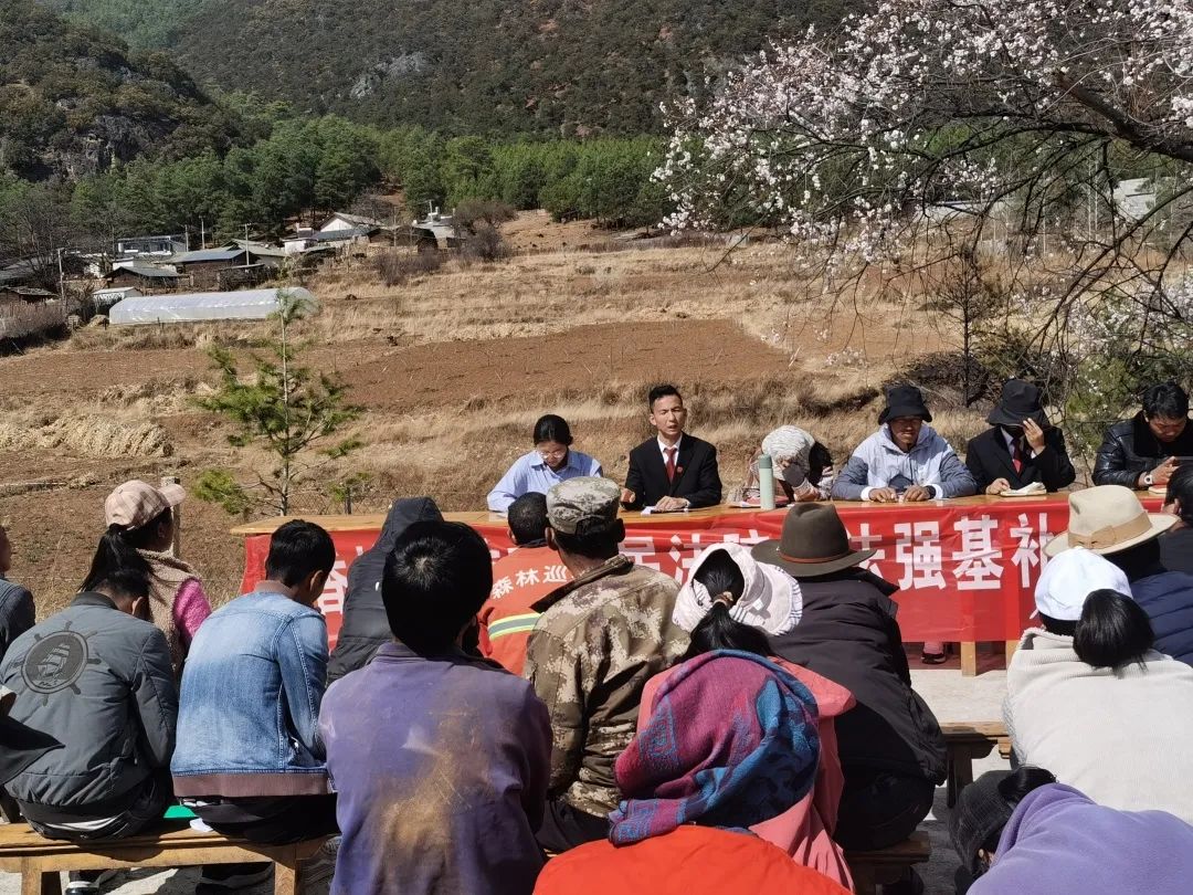 為深入貫徹落實(shí)普法強(qiáng)基補(bǔ)短板專(zhuān)項(xiàng)行動(dòng),打好普法強(qiáng)基攻堅(jiān)戰(zhàn),有效提升群眾法治意識(shí),維護(hù)社會(huì)和諧穩(wěn)定,3月14日,香格里拉市人民法院組織普法小分隊(duì)聯(lián)合洛吉鄉(xiāng)派出所、駐村干部、村兩委深入九龍村開(kāi)展普法強(qiáng)基補(bǔ)短板專(zhuān)項(xiàng)活動(dòng)。會(huì)議由洛吉鄉(xiāng)黨委副書(shū)記曹志平主持,九龍村高峰上組、高峰下組、干溝組、吖口組四個(gè)村民小組村民參加。