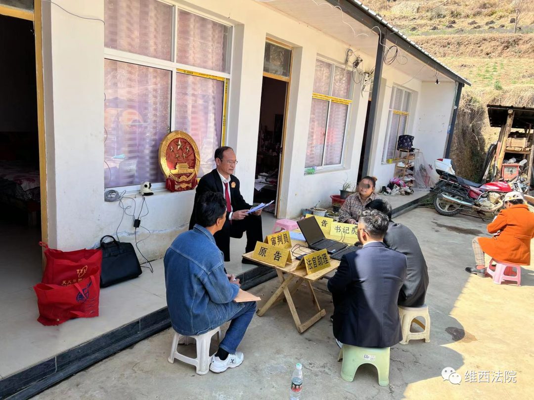 2023年3月14日,為減輕當(dāng)事人訴累,提高辦案質(zhì)效,立案庭干警一行4人到維西縣保和鎮(zhèn)蘭永村的當(dāng)事人家中進行巡回開庭。[詳細]