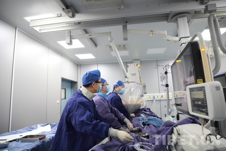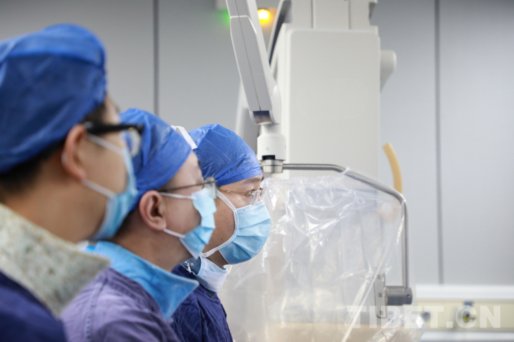 圖為北醫(yī)三院院長助理唐熠達(dá)教授(右一)帶領(lǐng)專家團(tuán)隊(duì)在為來自青海省果洛藏族自治州的先心病患兒手術(shù)時觀察導(dǎo)管行進(jìn)情況 攝影:劉莉