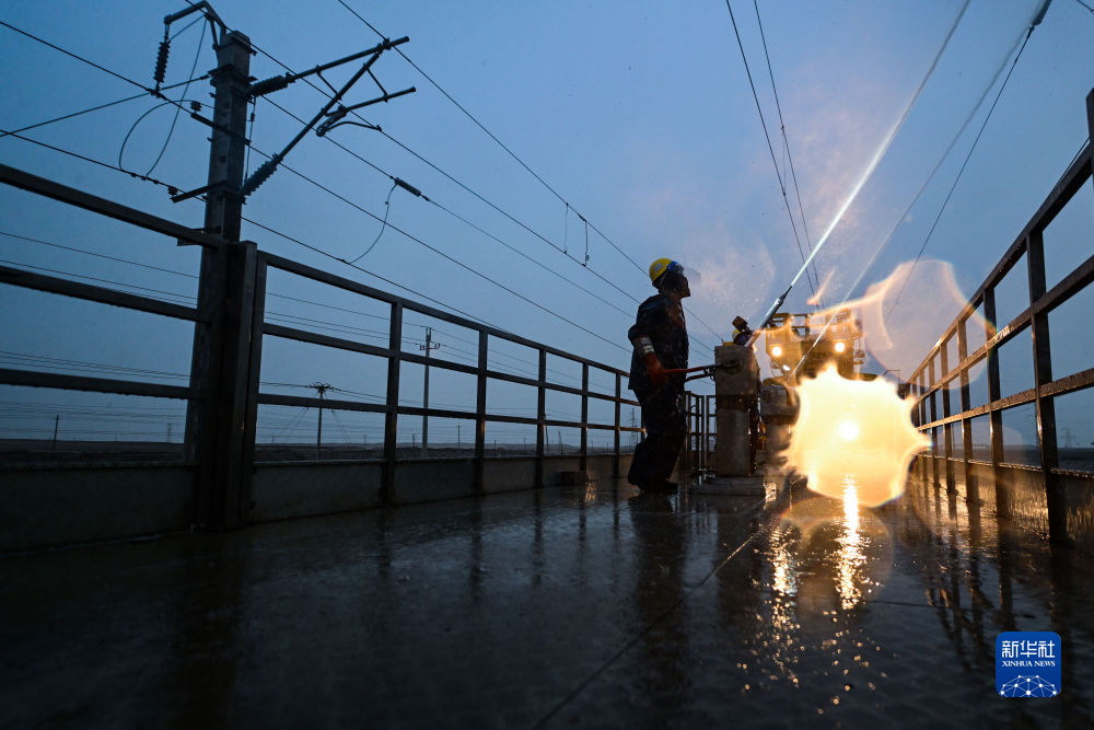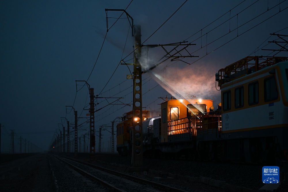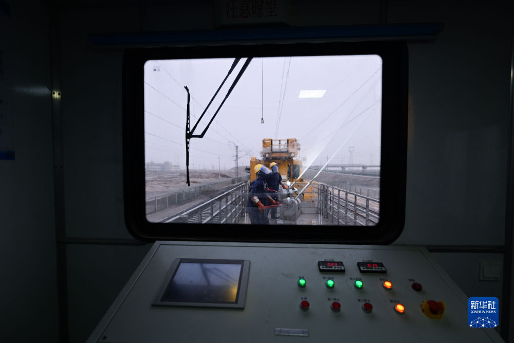 近日,為確保青藏鐵路牽引供電設(shè)備運行正常,保障青藏鐵路的暢通運行,中國鐵路青藏集團有限公司西寧供電段格爾木大修車間大修網(wǎng)工區(qū)組織人員利用沖洗車對青藏鐵路察爾汗段接觸網(wǎng)絕緣子設(shè)備附著的鹽污進行清洗作業(yè)。