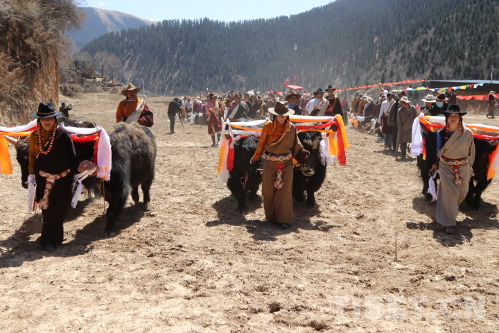 藏族民眾牽著耕牛參加春耕儀式。王麗山 供圖
