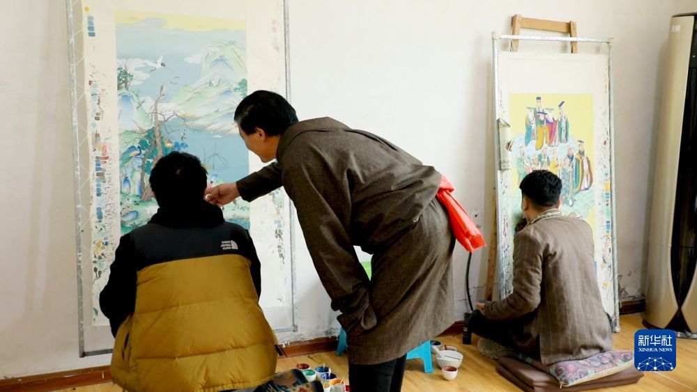 青海省黃南藏族自治州同仁市龍樹畫苑于2013年建成運行,是當?shù)赜忻姆俏镔|文化遺產(chǎn)綜合傳習中心。隨著熱貢唐卡知名度的不斷提高,全國各地慕名而來的學員也越來越多。十年來,龍樹畫苑累計培養(yǎng)760名熱貢唐卡藝人。其中,年收入達到10萬元以上的有百余人,普通學員的年收入在四到五萬元。