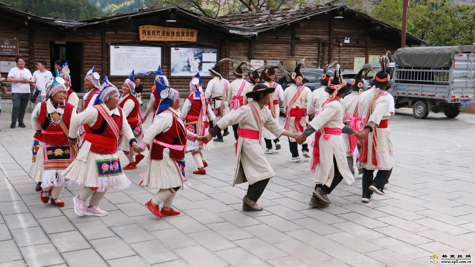 阿尺目刮是一種傈僳族群眾自娛性舞蹈,隨著領舞者哼唱的曲調(diào)響起,大伙隨即踏歌起舞,其曲調(diào)無須樂器伴奏,悠揚婉轉(zhuǎn), 可急可緩,給人以舒展自如的感受。