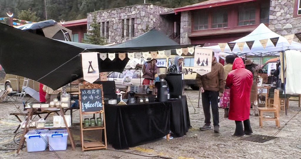 5月14日,普達(dá)措國(guó)家森林公園內(nèi),流動(dòng)咖啡車、本土手工藝、藏式美食、在地風(fēng)物于一體的露營(yíng)市集吸引游客紛紛駐足,看工藝品、喝咖啡、吃美食······游客們?cè)谙愀窭锢霹N季移動(dòng)咖啡節(jié)活動(dòng)現(xiàn)場(chǎng)體驗(yàn)咖啡、氣味、音樂(lè)、高原美景等多元的文化。