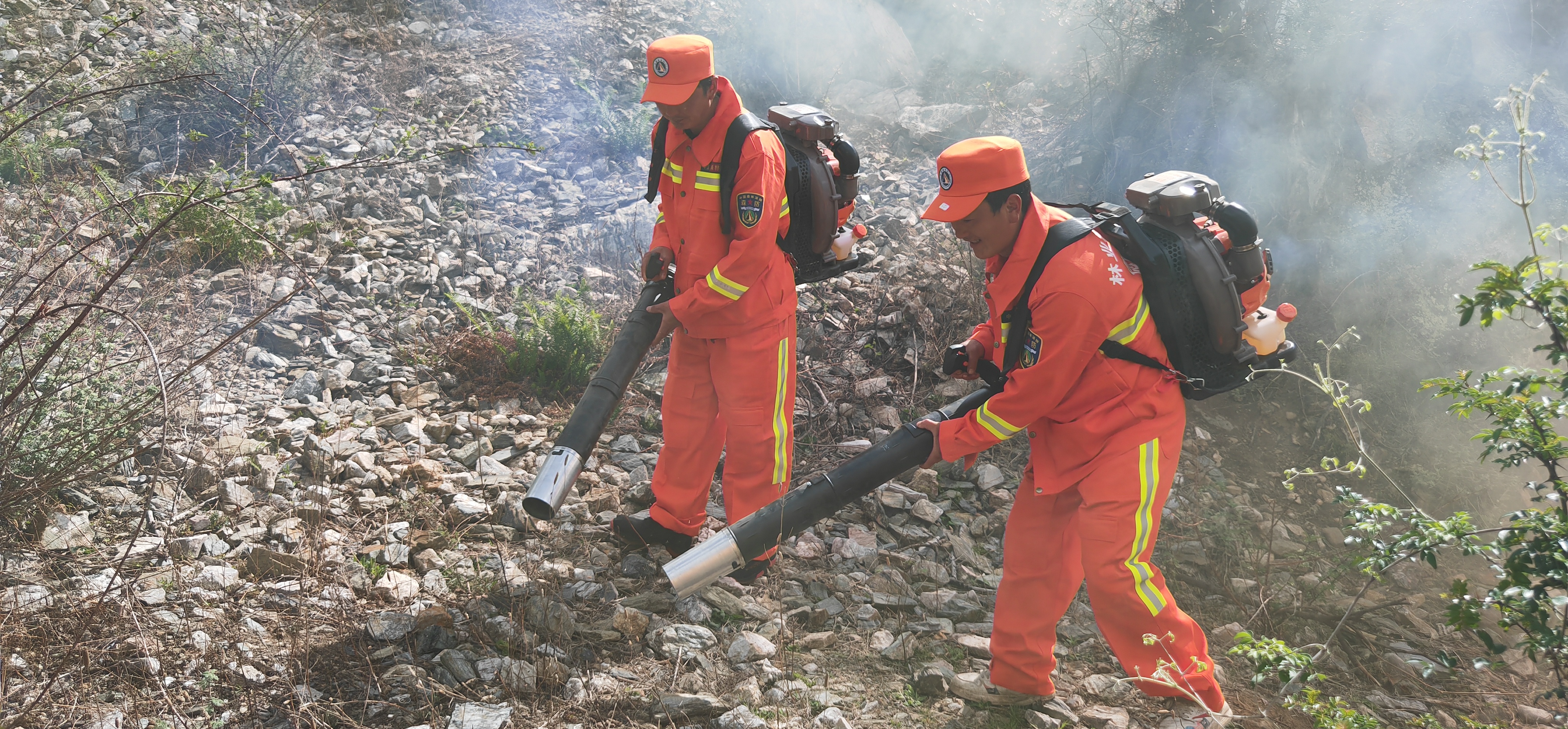 演練現(xiàn)場,隊員們分工合作,高壓接力水泵、油鋸、風力滅火機、往復式滅火水槍等滅火工具齊上陣,整個演練過程緊張有序。