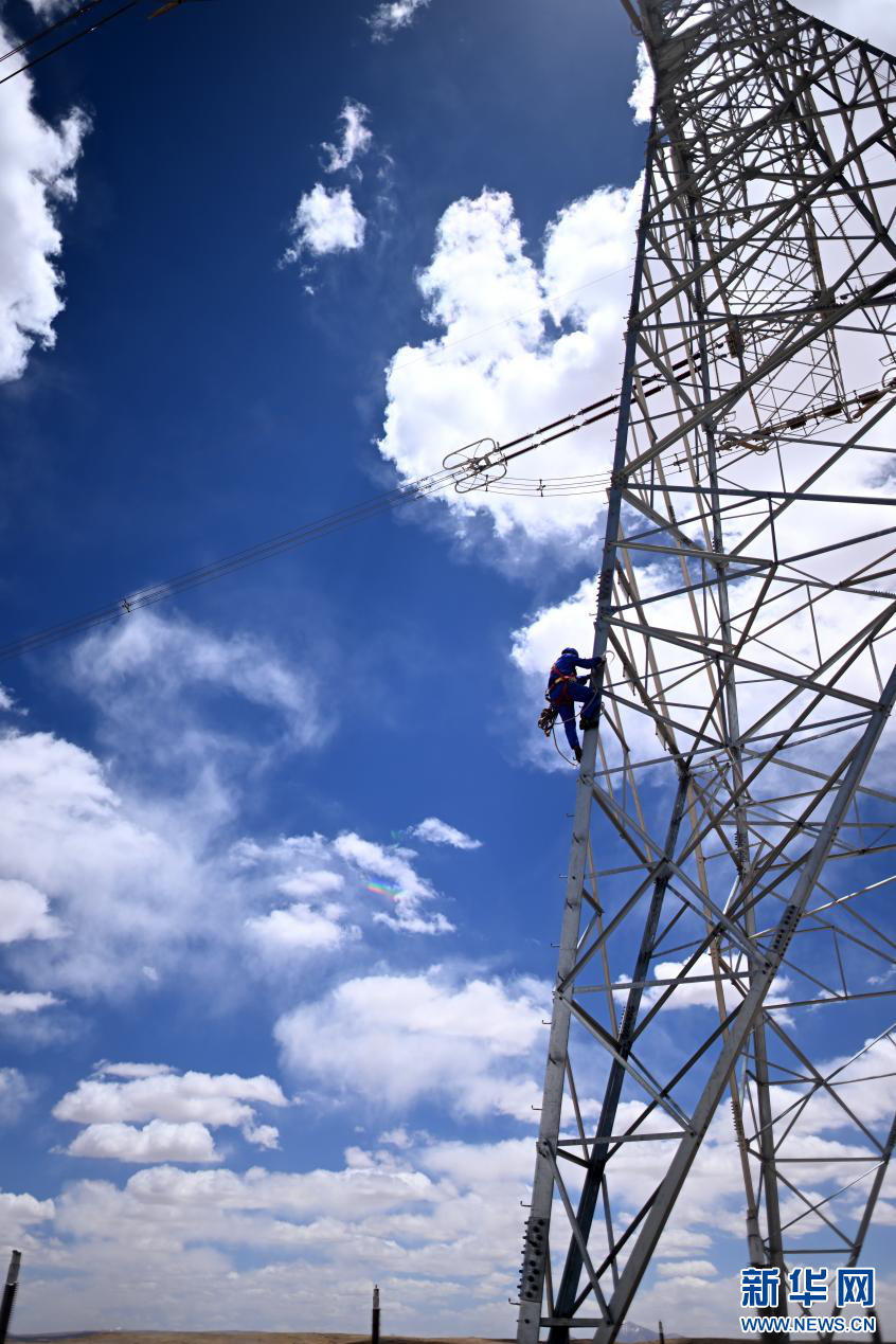 5月底,被譽(yù)為“電力天路”的青藏聯(lián)網(wǎng)工程迎來第12次年度集中檢修,超過420人將在15天內(nèi)完成608公里的輸電線路及柴達(dá)木換流站的檢修工作。在青海省海西蒙古族藏族自治州格爾木市唐古拉山鎮(zhèn)境內(nèi),檢修人員在巡檢中(6月3日攝)新華網(wǎng) 潘彬彬 攝
