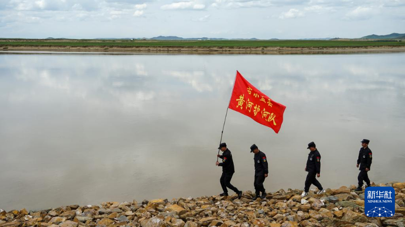 在阿壩州若爾蓋縣,黃河護河隊隊員正在巡河。新華社記者 尚文意 攝