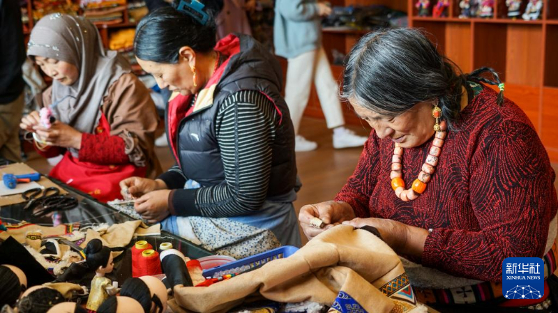 在若爾蓋縣唐克鎮(zhèn)白河社區(qū),“吉祥娃娃”手工社的社員們在制作“吉祥娃娃”。新華社記者 尚文意 攝