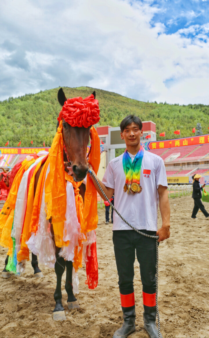 三天來,香格里拉五鳳山賽馬場內人頭攢動,熱鬧非凡,州內各族群眾和游客從四面八方聚集而來,為三年未能出現(xiàn)在香格里拉端午賽馬現(xiàn)場的駿馬和騎手們搖旗吶喊、加油助威,而來自州內及友鄰州市的各代表隊則不負眾望,為大家呈現(xiàn)了一場場熱血沸騰的高水平馬術競技。“我從15歲開始參加比賽,今年是收獲最大的一次,連獲了4枚金牌,我很高興,期待明年的端午節(jié)能再次與來自不同地方的選手切磋。”23歲的知詩定主說道。此次,他獲得了甲組1000米走馬、甲組3000米走馬、乙組3000米走馬、丙組1000米走馬賽冠軍。與他并駕齊驅的嘎提七林則在甲組5000米速度賽、丙組5000米速度賽、甲組3000米速度賽、乙組3000米速度賽中獲得金牌。