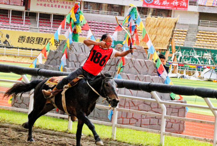 大理代表隊是此次參加跑馬拾哈達及跑馬射箭的唯一友鄰馬隊,該隊選手陸院章、余利剛在跑馬射箭項目中也獲得了第三、四名的好成績?!按罄砗偷蠎c都是云南省馬術比賽的主力,香格里拉的端午賽馬節(jié)我們每年都來參加,大理的三月街賽馬大會迪慶隊也不會缺席,多年來我們相互交流馬術,結下了深厚的友誼,雖然此次我們沒有獲得最好的成績,但三年未能來香格里拉端午賽馬節(jié)的遺憾補上了,能夠再續(xù)雙方民族、區(qū)域之間割不斷的情誼,很值得!”大理代表隊領隊余利邦表示。