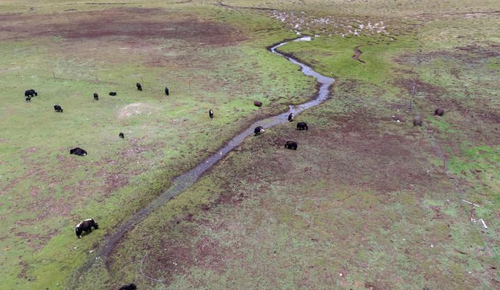 在平均海拔超4500米的長江源區(qū),牦牛、藏羊是當?shù)啬撩袷来蕾嚨纳媮碓础R恍﹨^(qū)域過去牛羊超載,生態(tài)惡化。