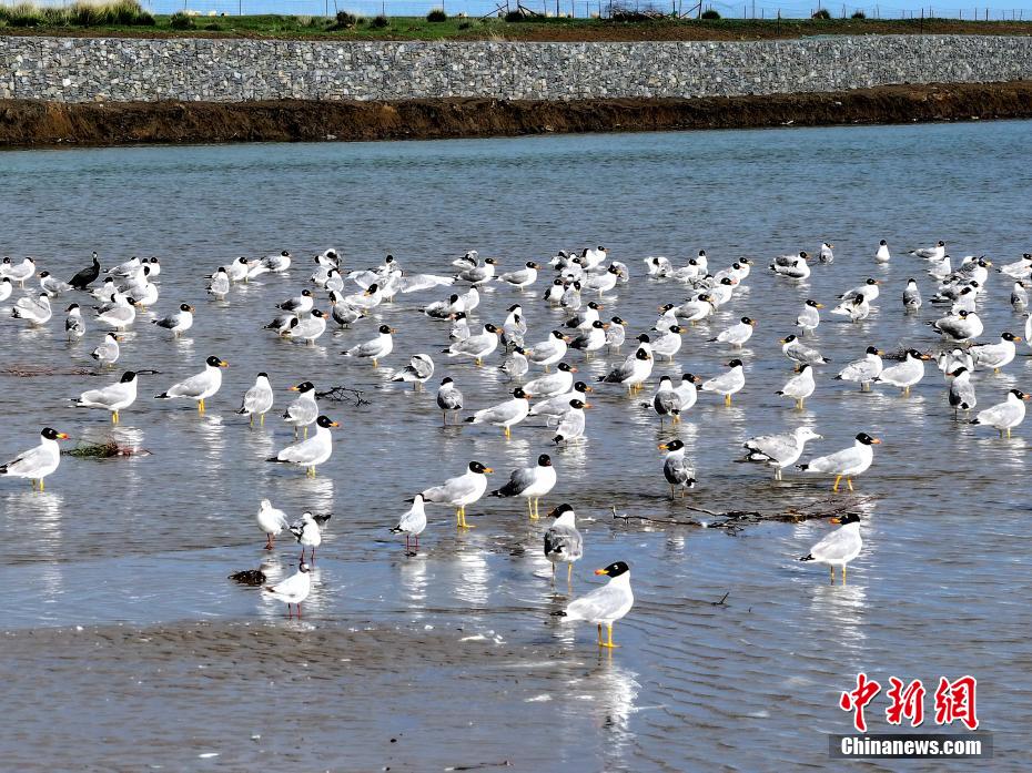 圖為青海湖入湖河流布哈河漁鷗云集。包雷 攝