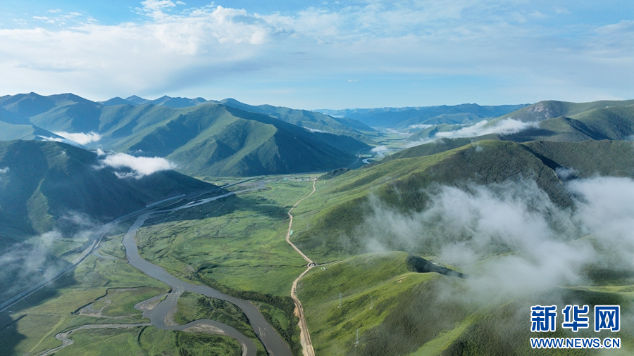 圖為在青海省果洛藏族自治州甘德縣境內(nèi)拍攝的夏日風光(無人機照片)。新華網(wǎng) 宋忠勇 攝