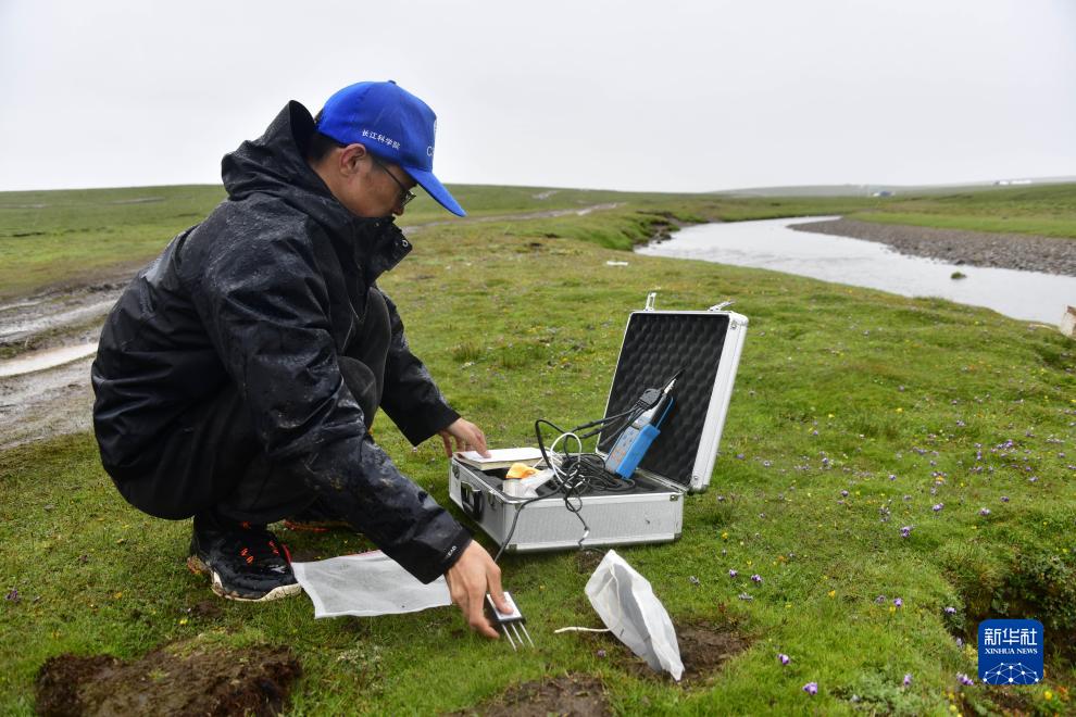 采集水土和植被等樣本,測量環(huán)境溫度和鹽度等參數(shù),來自長江科學院的科考隊員們連日來深入長江源區(qū)查旦濕地觀測取樣,開展?jié)竦靥純α抗浪?。這個科考研究項目將填補長江源區(qū)濕地碳儲量科研空白。