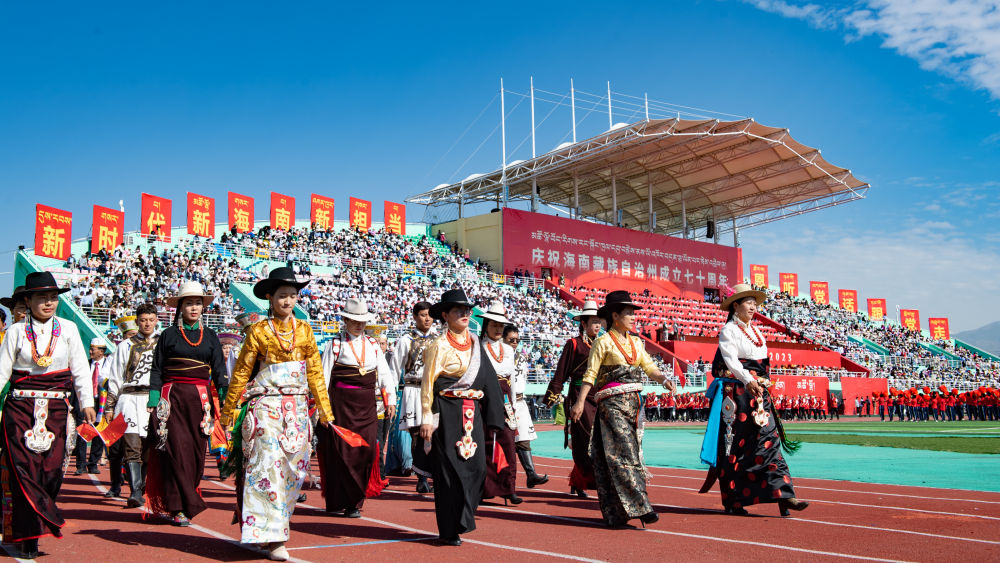 8月1日,青海省海南藏族自治州舉行慶祝成立70周年大會(huì)。海南州民族體育場(chǎng)彩旗飄飄,歌聲悠揚(yáng),各族群眾身著盛裝,滿(mǎn)懷喜悅。