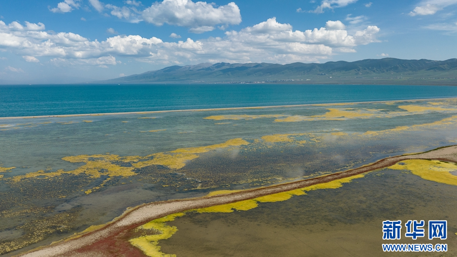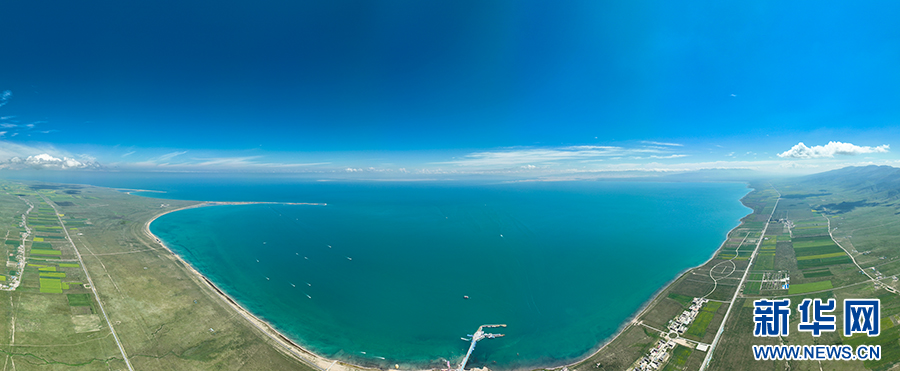 這是8月2日拍攝的青海湖。(無人機全景照片)新華網(wǎng) 郭勇良 攝