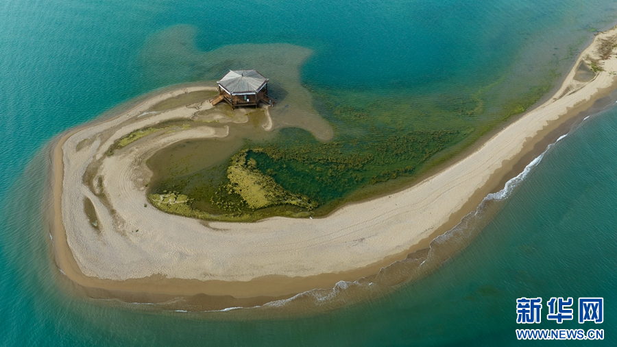 這是8月2日拍攝的青海湖二郎劍景區(qū)二郎劍半島一角。(無人機照片)新華網(wǎng) 郭勇良 攝