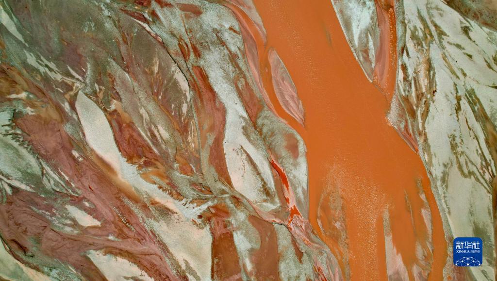 在沱沱河與當曲匯合處的囊極巴隴拍攝的辮狀河道局部(7月26日攝,無人機照片)。新華社記者 劉詩平 攝