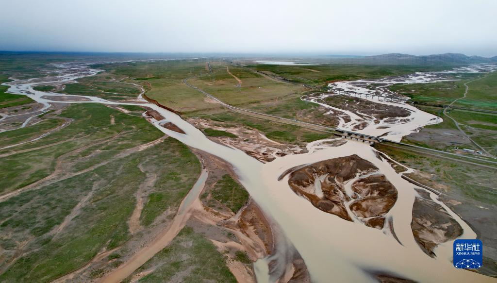 沱沱河與當曲匯合處的囊極巴隴(7月27日攝,無人機照片)。新華社記者 劉詩平 攝