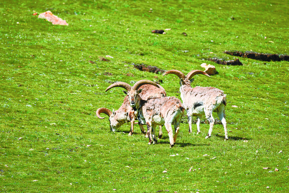 索加鄉(xiāng)正在覓食的巖羊。