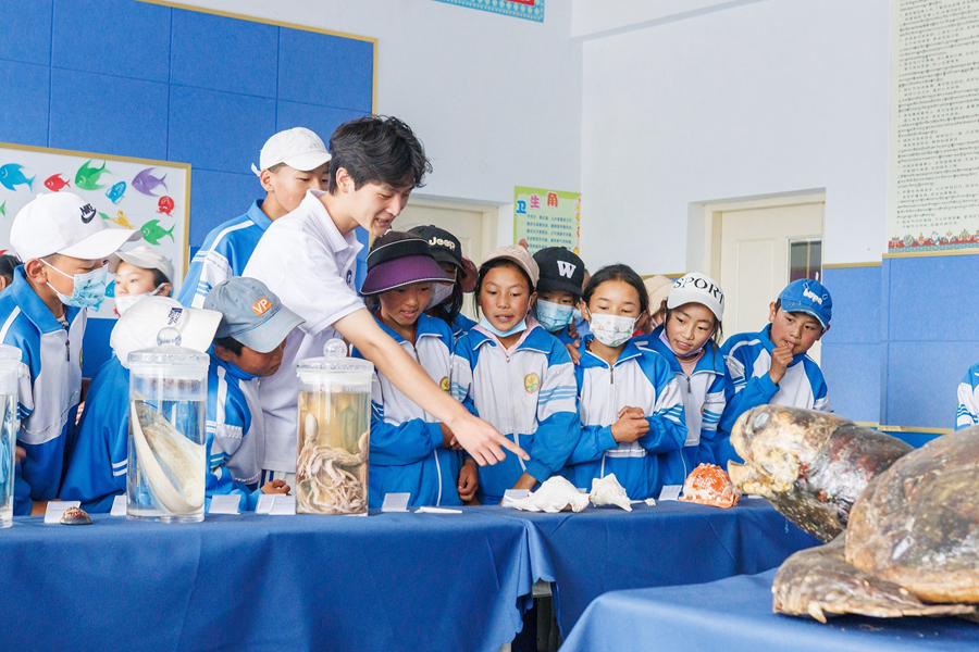 據(jù)介紹,支教隊在抵達囊謙第二完小后,充分發(fā)揮海洋特色,向孩子們分享了海洋生物博物館中的標(biāo)本制作方法,普及標(biāo)本的制作原理,并且從海洋的分布位置到海洋物種數(shù)量及分類,從體積最大的海洋生物藍鯨到游泳速度最快的劍魚,以及海洋污染的危害等方面為孩子們普及海洋環(huán)境保護知識。