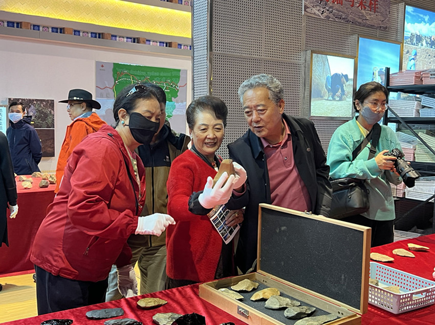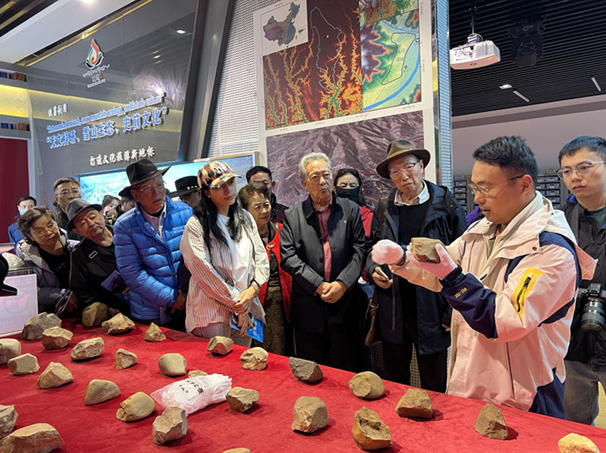 來自省內(nèi)外學(xué)術(shù)界和演藝界的甘孜名人戴上手套近距離觸摸石器物品所傳達(dá)的歷史溫度。
