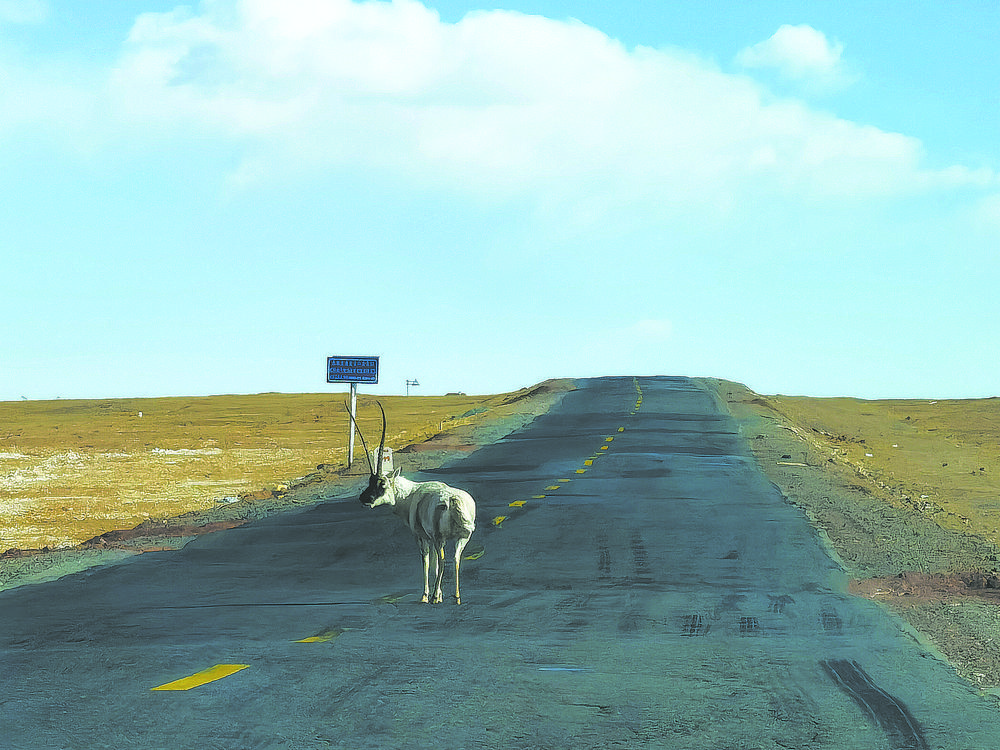青藏公路上漫步的藏羚羊。張多鈞 攝