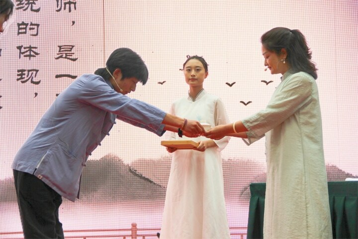 隨后,教師和同學(xué)們集體宣讀誓言,慷慨洪亮的聲音在宣告他們有信心做好一名稱職的人民教師、優(yōu)秀的學(xué)生。學(xué)生代表的發(fā)言充滿朝氣與活力,胸懷理想與信念,展現(xiàn)出同學(xué)們磨礪自我、奮斗青春的信心與抱負(fù)。教師代表的發(fā)言如良師益友娓娓道來(lái),用榜樣的力量和長(zhǎng)者的親切,為同學(xué)們指點(diǎn)迷津、加油鼓勁,激勵(lì)同學(xué)們胸懷遠(yuǎn)志、堅(jiān)毅卓絕、奮發(fā)進(jìn)取、只爭(zhēng)朝夕!隨后,同學(xué)們?cè)谥鞒秩说闹敢旅C整衣冠、向老師鞠躬行禮,寓意此后正式踏入學(xué)門(mén),明志于四方。