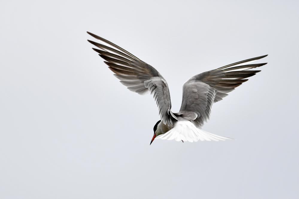 一只燕鷗在甘肅尕海則岔國家級自然保護區(qū)的尕海濕地上飛翔。 新華社記者 陳斌 攝