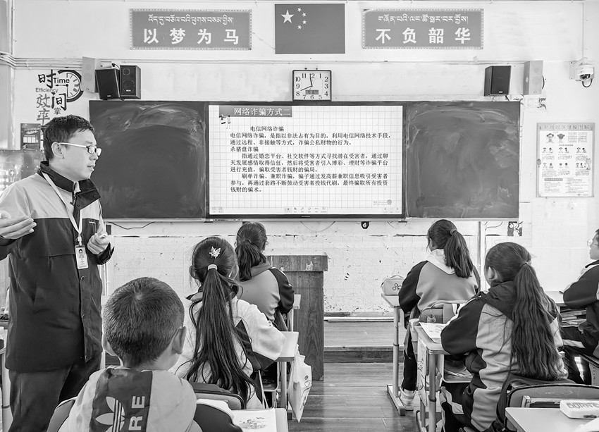 “通過(guò)開(kāi)展‘網(wǎng)絡(luò)安全’主題班會(huì)課,讓我們的網(wǎng)絡(luò)安全意識(shí)提高了很多,能夠快速準(zhǔn)確地判斷出什么事該做,什么事不該做,讓我們做到安全上網(wǎng)和健康上網(wǎng)。作為學(xué)生來(lái)說(shuō),我們要拒絕網(wǎng)絡(luò)謠言、網(wǎng)絡(luò)詐騙、網(wǎng)絡(luò)暴力?!卑四昙?jí)六班學(xué)生高絨曲西說(shuō)。