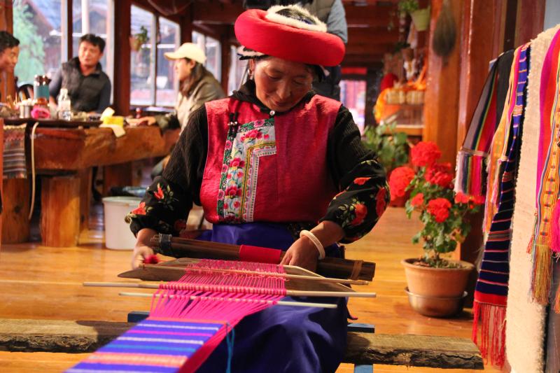 近日,香格里拉市建塘鎮(zhèn)紅坡村“和美鄉(xiāng)村 綻放藝彩”馬幫文化手工藝品制作培訓會在呀啦索民間走馬俱樂部舉行,20余名符合參訓條件、有手工制作創(chuàng)業(yè)就業(yè)意愿的婦女參加培訓。圖為參訓婦女拿起熱銷產(chǎn)品討論分析其制作工藝和改良方法。
