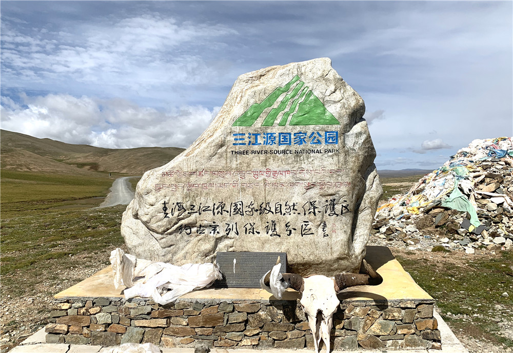 2020年8月27日,青海省玉樹藏族自治州曲麻萊縣境內(nèi)的約古宗列保護分區(qū)石碑。新華社記者 李琳海 攝