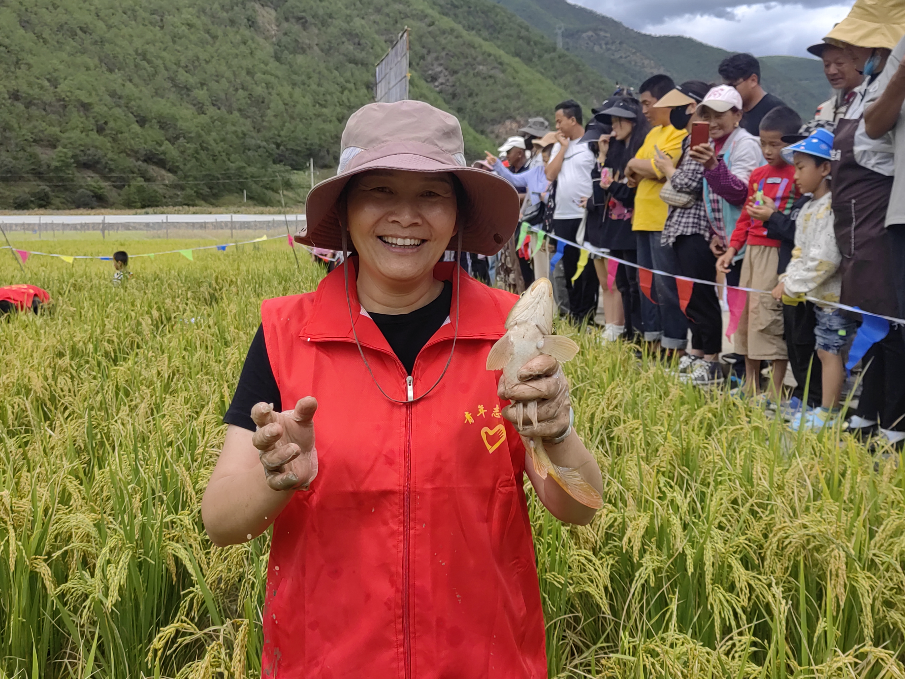 當天下午的活動中,摸魚、抓鴨、射箭、餌塊制作、崖柏香制作等民俗體驗活動一一上演,淋漓盡致地展現(xiàn)出了農(nóng)民的美好生活。塔城素有“高原魚米之鄉(xiāng)”美譽,稻田魚、稻田鴨等生態(tài)農(nóng)產(chǎn)品供不應求,一派“禾下乘涼、稻香綿長”的豐收景象。