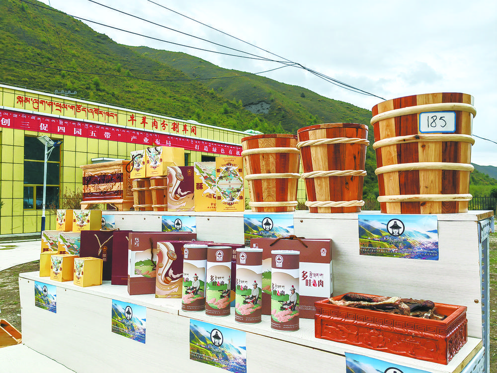 多哇鎮(zhèn)有機畜產(chǎn)品輸出基地內(nèi)豐富的農(nóng)畜產(chǎn)品。牛玉嬌 攝