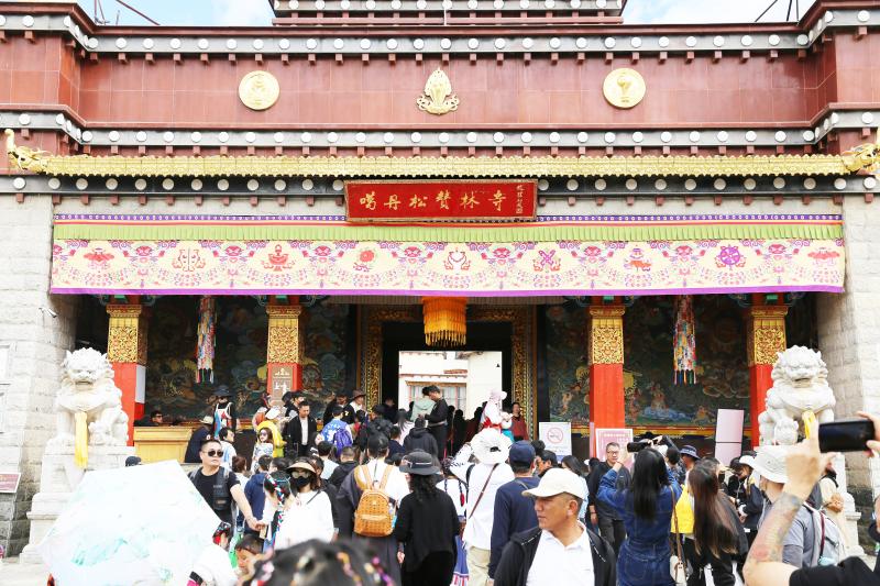“看到松贊林寺全景感覺很雄偉、莊重,我們還穿了當(dāng)?shù)氐牟胤牧艘恍懻?,感覺很漂亮,也比較出片?!眮碜陨綎|的羅云女士說,“我們進(jìn)景區(qū)的時(shí)候已經(jīng)中午12點(diǎn)多了,工作人員都一直沒有休息,還耐心地引導(dǎo)和服務(wù)我們,感覺很溫馨”。據(jù)了解,假期前三日,松贊林景區(qū)游客接待量不斷上升,分別為4300人次、8200人次、14400人次。