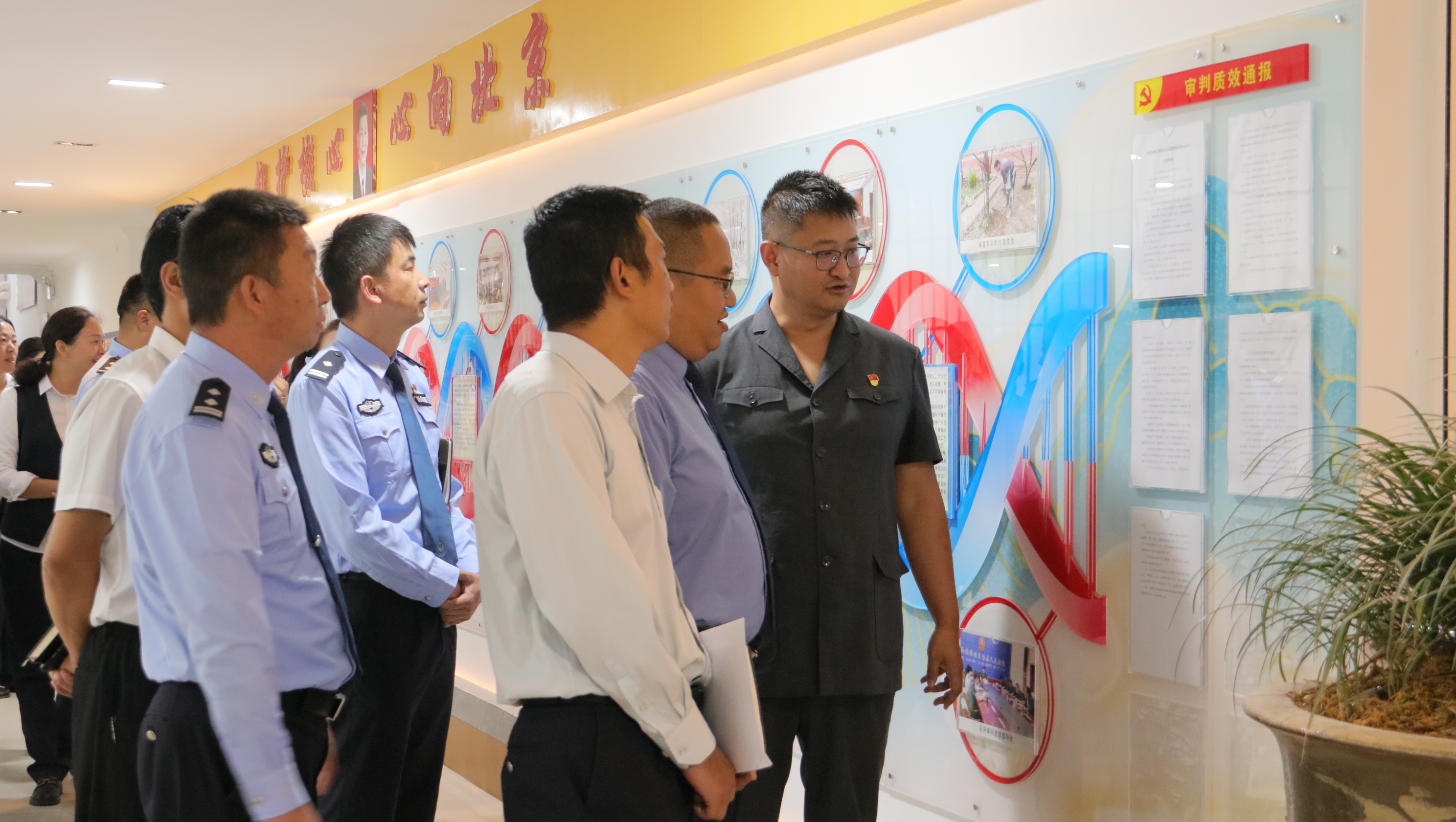 與法同行“零距離”。升旗儀式后,全體同志跟隨講解員進(jìn)入審判大樓,參觀了縣人民法院訴訟服務(wù)中心、黨建文化長廊,詳細(xì)了解了“蘭韻傈鄉(xiāng)·紅色天平”黨建文化品牌建設(shè)的特色亮點(diǎn),通過參觀學(xué)習(xí)打開了政法系統(tǒng)黨組織互幫互學(xué)、共創(chuàng)共贏的新局面。并現(xiàn)場體驗(yàn)?zāi)M法庭,將法院庭審的真實(shí)場景通過情景再現(xiàn)的形式,直觀地展示給在場的黨員干部及工作人員,進(jìn)行“以案說法、以案示警”。通過“沉浸式體驗(yàn)”,讓全體黨員親身感受了審判工作氛圍,引導(dǎo)大家進(jìn)一步筑牢政治忠誠,強(qiáng)化法治思維,牢記初心使命,立足崗位職責(zé),扎實(shí)推進(jìn)全縣政法工作再上新臺階。