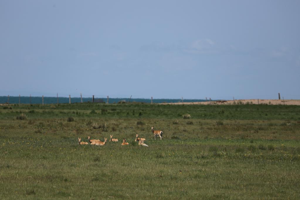 6月14日,在青海省海南藏族自治州共和縣青海湖畔,成群普氏原羚在草場上奔跑撒歡、愜意覓食,悠閑自在。普氏原羚現(xiàn)僅分布于青海湖環(huán)湖部分區(qū)域,是中國國家一級保護(hù)動(dòng)物,也是世界上有蹄動(dòng)物中最瀕危的物種。[詳細(xì)]