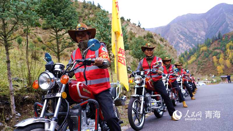 管護(hù)員們騎摩托車(chē)準(zhǔn)備巡護(hù)。人民網(wǎng)記者 楊啟紅 攝
